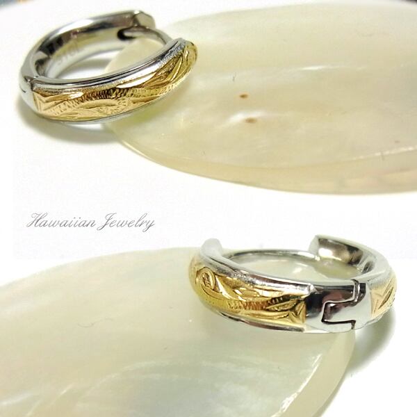 ハワイアンジュエリー フープピアス スクロール サージカル ステンレス 金属アレルギー対応