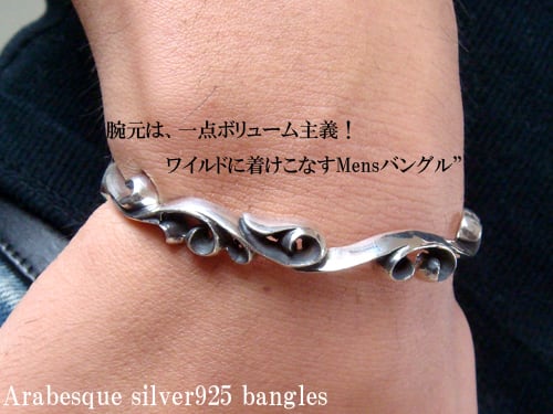 唐草シルバーバングル!ダイナミックに描いた人気アラベスクデザイン。