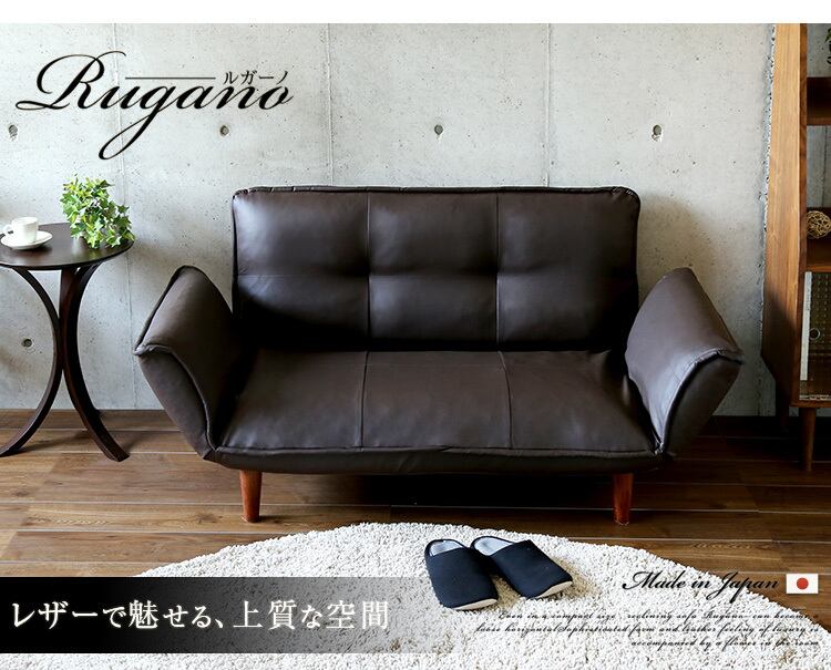 コンパクトカウチソファ【Rugano-ルガーノ-】(ポケットコイル リクライニング レザー風 日本製)