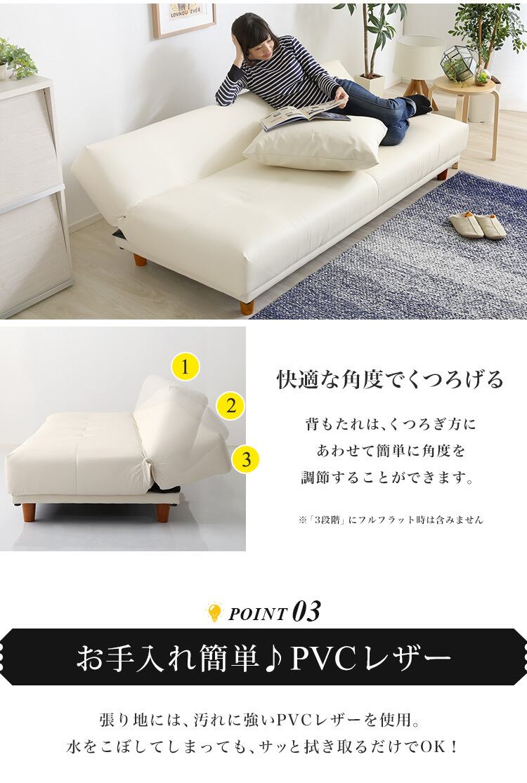 ソファにもベッドにもなる2way仕様の3段階リクライニングソファ!