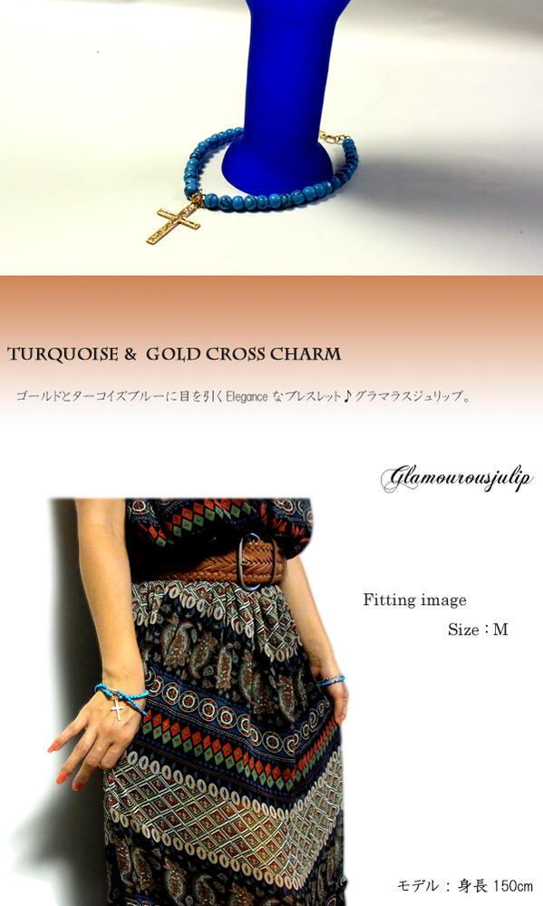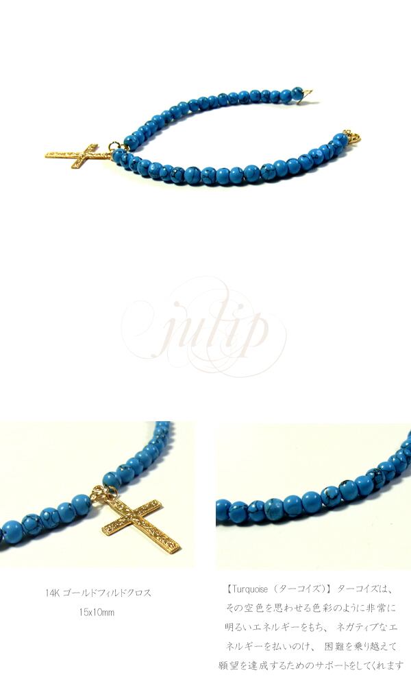 【julip】ターコイズ/クロスゴールド フィルド ブレスレット /パワーストーン/Goldfilled