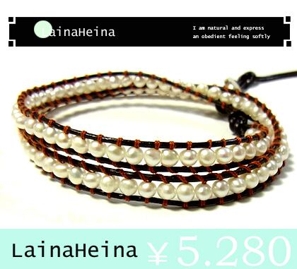 【LainaHeina】ホワイトパール&シルバー925 パワーストーン ブレスレット/レザー