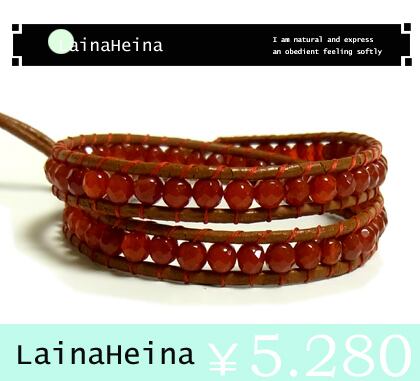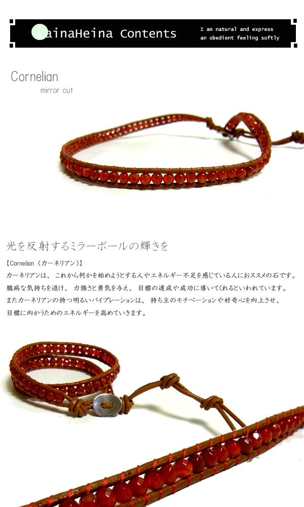 【LainaHeina】カーネリアン シルバー925 パワーストーン ブレスレット/レザー/2重巻