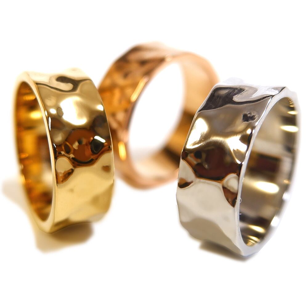 リング 平打ち指輪 太め でこぼこ サージカル ステンレス