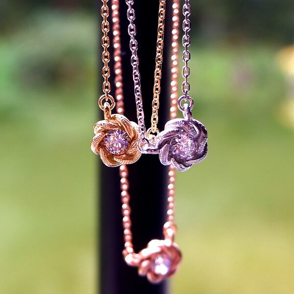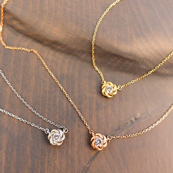ハワイアンジュエリー フラワー ネックレス 花 1粒 CZ スクロール