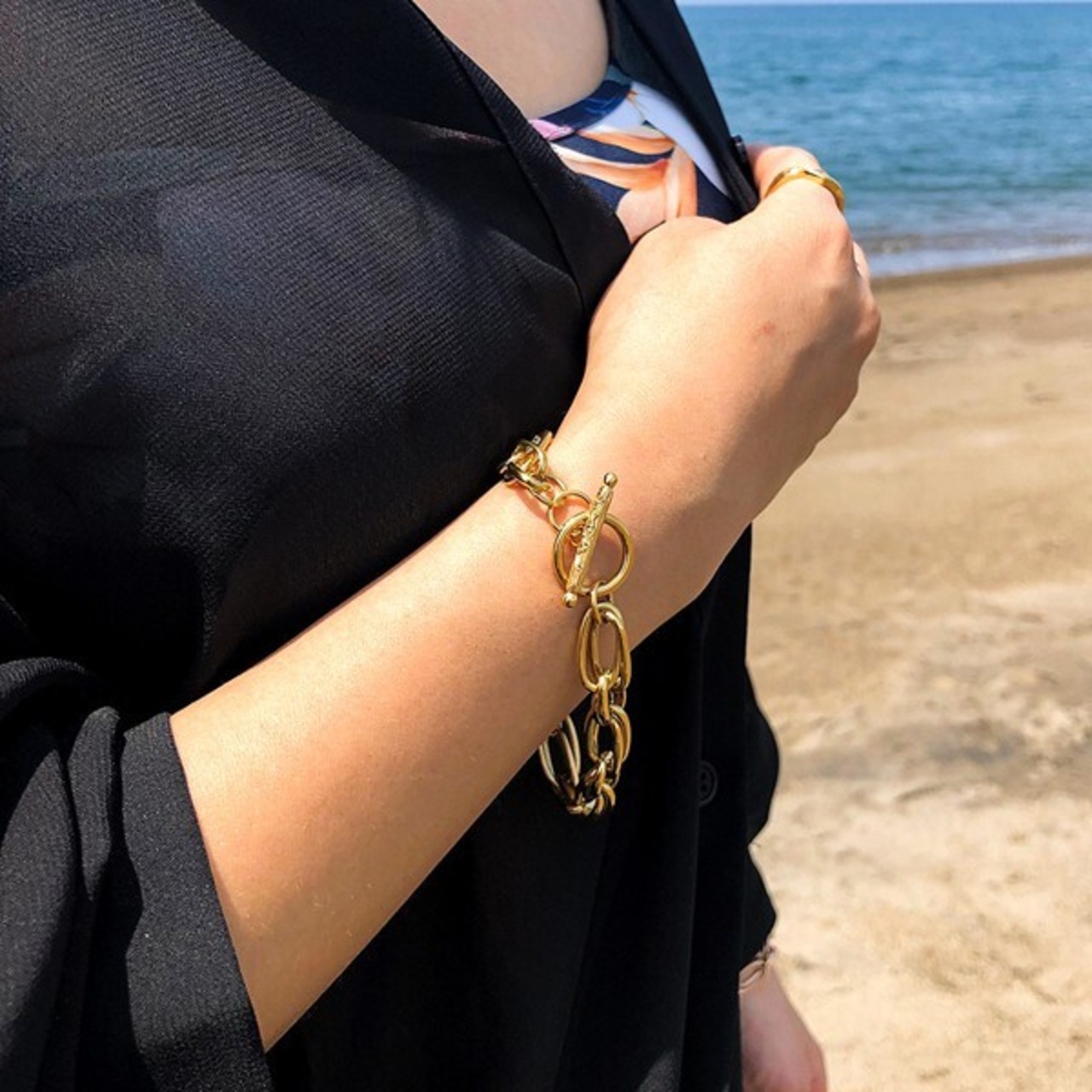 Tバー全面にはカレイキニスクロール柄を合わせました。シンプルながらも複雑に絡み合うチェーンが美しい造形を作り上げています。