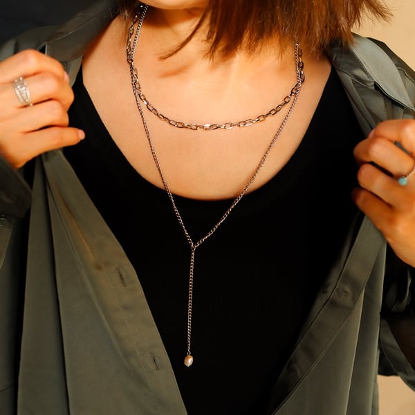 2連レイヤーネックレス。 ワードローブに揃えておきたいデザイナーズネックレス。