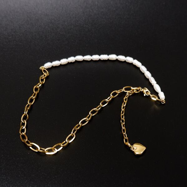 たっぷりポテト形のパールが可憐らしさを印象付け、ステンレスならではのシックな質感も魅力です。