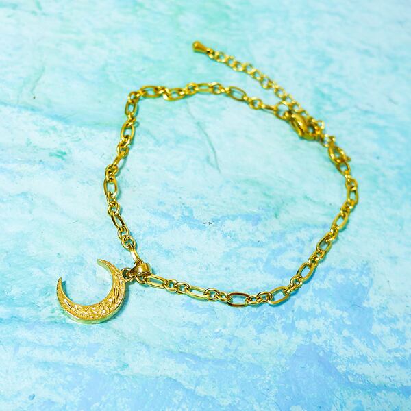 ハワイアンジュエリー アンクレット ムーン 月 三日月 スクロール サージカル ステンレス