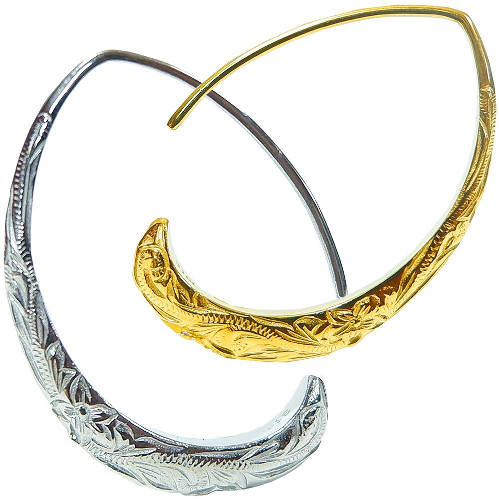 ハワイアンジュエリー 大 フック ピアス 両耳用 スクロール サージカル ステンレス