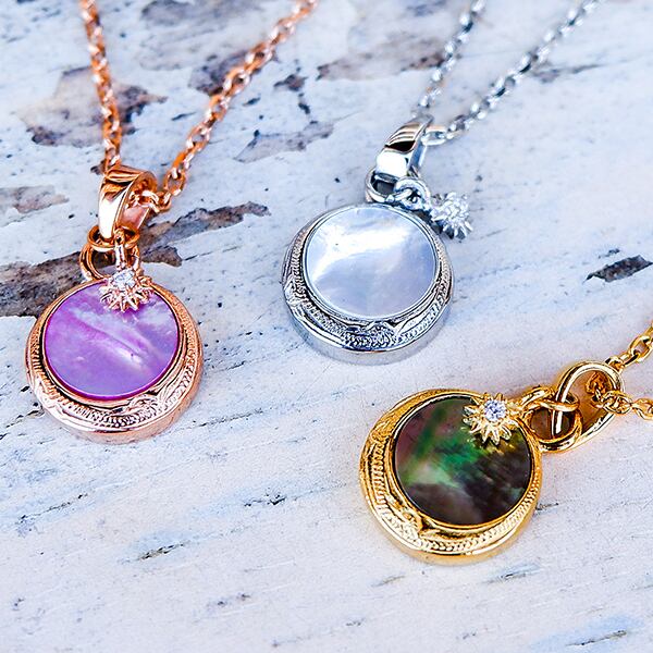 ひとつひとつ異なるシェルの模様と輝きが魅力の、大人チックなネックレスです