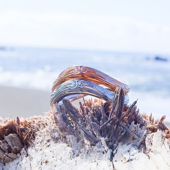 まっすぐでも角ばってもいない、スクロール(波)が刻まれたウェーブリング!