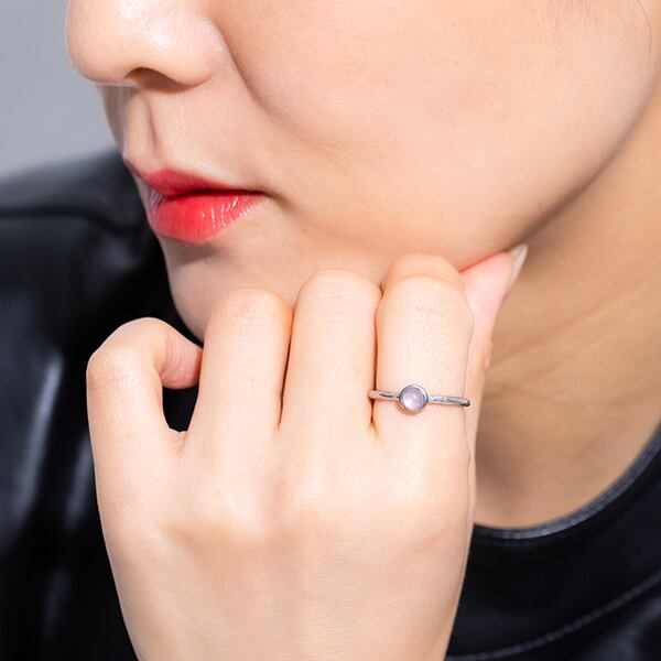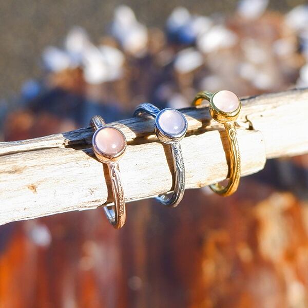 宝石を載せる台座の側面にも繊細な模様(スクロール)が施されていて、ひと粒の輝き ”ローズクウォーツ” が美しく引き立つリングです!